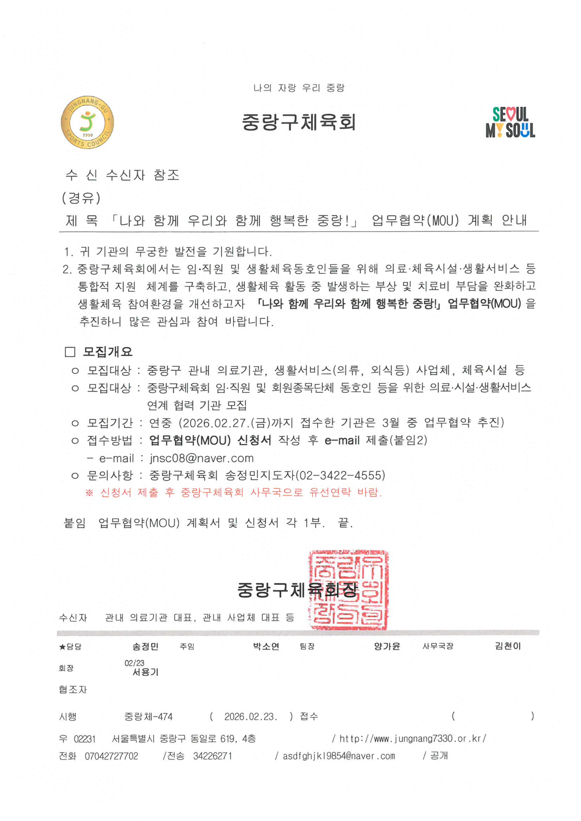 나와 함께 우리와 함께 행복한 중랑! 업무협약(MOU) 계획 안내